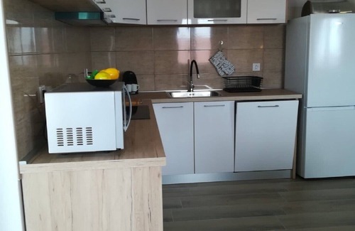 This lovely spacius two bedroom apartment comes with a terrace and Sea view. It can perfectly fit up to five people. The living room comes with a large sofa bed and SAT LCD TV. The kitchen is well equipped with an oven, refrigerator, water kettle, microwave, freezer, stove, coffee maker, kitchen utensils, and dishwasher. One bedroom is furnished with large double beds, other bedroom has 2 single beds and there is sofa bed in the living room..