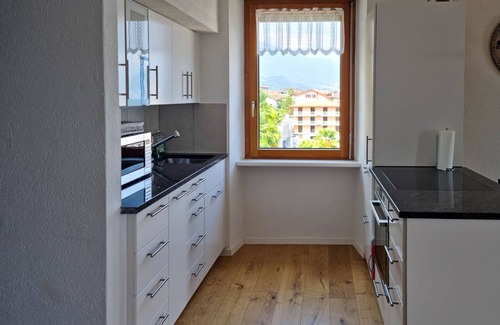 The bright, modernised flat is located in the romantic Ticino Villa Egeria right in the centre - the ideal starting point for exploring Brissago and the surrounding mountains. Despite the very well insulated windows, the lively town centre can be heard from time to time. On the other hand, you have direct access to the lively Mediterranean life and can practically see yourself reflected in the surface of Lake Maggiore from your balcony.