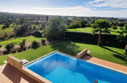Overlooking the mountain, the holiday apartment Villa Premium in Carvoeiro impresses guests with its fantastic views. The 2-storey property consists of a living room, a kitchen, 5 bedrooms and 5 bathrooms as well as an additional toilet and can therefore accommodate 10 people. Additional amenities include Wi-Fi, a TV, air conditioning as well as a washing machine.