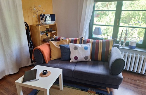 The two - room apartment in the small town of Groß Breesen near Güstrow, which is very quietly situated by the forest, is lovingly furnished with a separate entrance in the house of the landlord. The ground floor, 32 m² bright accommodation with fireplace is ideal for guests interested in rural holidays, peace and nature. But cyclists are also welcome. For cozy evenings or for relaxation invites the large garden with garden furniture and barbecue. In approx. 500 m distance one finds the book hotel with restaurant, wine cellar and possibility of the book exchange, as well as a pottery. Excursion possibilities and activities in Groß Breesen: • Pottery approx. 500 m away ��� Book hotel with restaurant and wine cellar • Nature reserve Breesener See • Feldstein church in Bellin • Canoe tours on the Warnow • Horseback riding in the stud farm GanschowExcursions and activities in Krakow am See (10 km): • Lookout tower with a beautiful view of Lake Krakow • Lake promenade with a fishing court • Old synagogue with changing exhibitions and concerts • Electric solar boat Lena Manuela & rafting • Fishing, paddling, cycling • Guided tours for example. B. City tour, Moorlampchenwanderung u. V. A. The total price includes: bed linen, towels, final cleaning, parking, utilities, cot and high chair Pets: not desiredService: Breakfast 7.50 EUR / person - only on request!