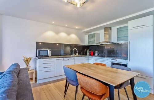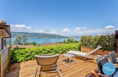 Experience an exceptional stay in this modern and elegant apartment, offering a stunning 180° view of Lake Annecy and the mountains. Nestled in a quiet street in the village of Veyrier-du-Lac, this is the perfect retreat for a getaway with family or friends, just a 15-minute walk from the beaches and lakeside promenade.