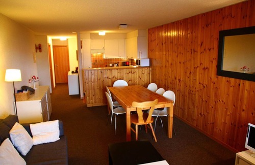 This spacious apartment in Veysonnaz accommodates up to 8 guests, making it perfect for families or groups. It features three bedrooms, including a bunk bed, and a living room with a sofa bed for additional sleeping arrangements. The apartment is pet-friendly and includes a balcony with garden furniture, offering beautiful views of the Rhône Valley. Guests can enjoy complimentary access to various activities and services in the area. Situated just 750 meters from the cable car, the apartment provides easy access to skiing and hiking trails, ideal for outdoor enthusiasts. Local shops and restaurants are only 2 km away, ensuring all essential amenities are within reach. The location is well-connected, with nearby bus and train stations facilitating travel to surrounding areas, making exploring the beautiful Swiss Alps convenient. The fully equipped open kitchen is designed for convenience, featuring essential appliances such as a refrigerator, microwave, oven, dishwasher, and necessary dishes and utensils. Additional amenities include a laundry and ski room within the building, outdoor parking (subject to availability), and elevator access. With these facilities, the apartment ensures a comfortable and enjoyable stay for all guests, providing everything needed for a memorable holiday in the mountains.