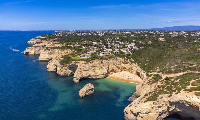 This cozy apartment is located in the charming coastal town of Benagil, just steps away from the beautiful Praia de Benagil beach, making it an ideal spot for a family vacation, romantic escape, or trip with friends. The apartment comfortably accommodates up to four guests with two well-appointed bedrooms: a master bedroom featuring a luxurious king-size bed and a second bedroom with two individual beds. With three bathrooms, including one with a relaxing bathtub, everyone’s needs are well catered for. The fully equipped kitchen is perfect for preparing delicious meals, while the open-plan living and dining area provides a welcoming space to relax and enjoy quality time together. Step outside to a spacious terrace with stunning sea views, ideal for al fresco dining or soaking up the sun. Guests can also enjoy the shared outdoor pool, surrounded by lush greenery, for a refreshing dip on warm days. Conveniently situated near local attractions, this apartment allows you to explore the quaint shops and restaurants of Benagil and nearby beautiful beaches like Praia do Carvalho and Praia da Marinha. Golf enthusiasts will find excellent courses such as Vale do Milho Golf and Gramacho Golf nearby. With amenities like air conditioning, Wi-Fi, and a private entrance, this well-equipped apartment serves as the perfect base to experience the stunning beauty of the Algarve region.