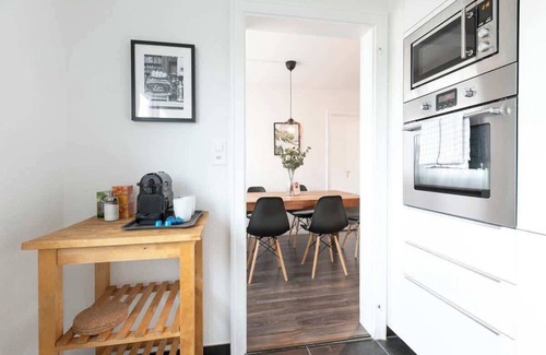 For productive work, there is a special notebook workstation that provides a pleasant working environment. Fast and reliable internet is available throughout the apartment with WLAN. The apartment is within walking distance of the town center and the train station. Shopping facilities, bars and restaurants can be reached quickly and easily.
