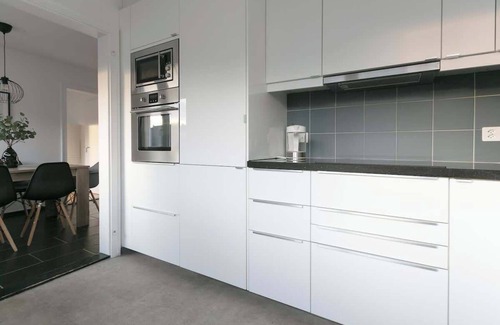 The apartment has a fully equipped kitchen with crockery, fridge incl. freezer compartment, dishwasher and oven. There is also a kettle, toaster and a Nespresso coffee machine.
