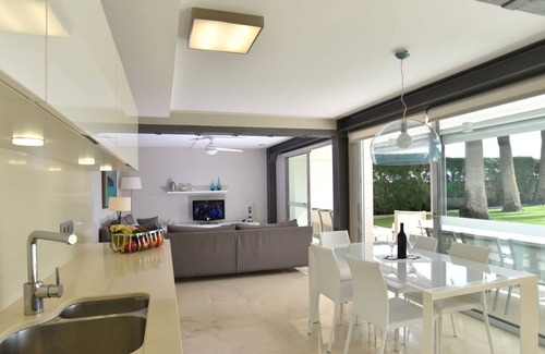 They have a modern decoration, with kitchen and high-end appliances (washing machine, dishwasher, microwave, oven), spacious bathrooms, comfortable sofas, air conditioning, ceiling fans, TV and free Wi-Fi so they can use their computers. Also small appliances such as toaster, juicer, iron, blender, dryer ..