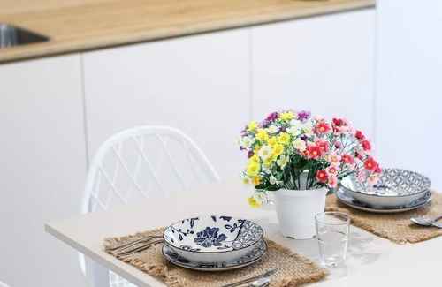 While you're here, you can enjoy all the comforts of home and more, including WiFi and a bidet, as well as air conditioning and an ironing board. Other amenities include laundry facilities, towels, soap, and toilet paper.