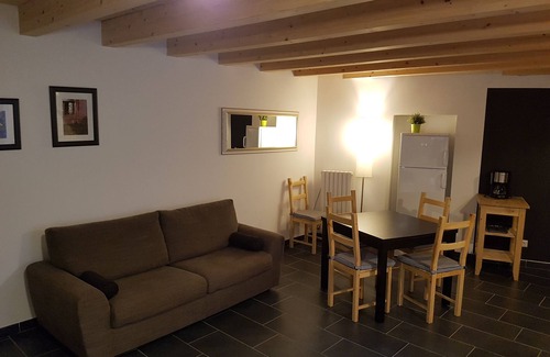 Living room with sofa bed for two, satellite TV, Wi-Fi and table for six people
