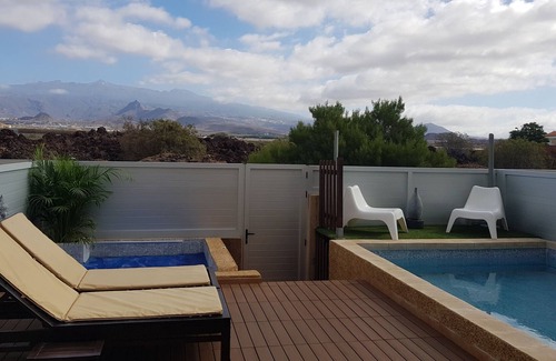 Special apartment with pool and Jacuzzi with warm water, and also for the exclusive use of guests. Perfect for sunbathing and resting. It is located in a very quiet place with views of Mount Teide. Very close to: the beach, cafes, supermarkets and restaurants. Away from the hustle and bustle of hotel areas, ideal for relaxation. You can enjoy a barbecue, or watch the stars on the large terrace.