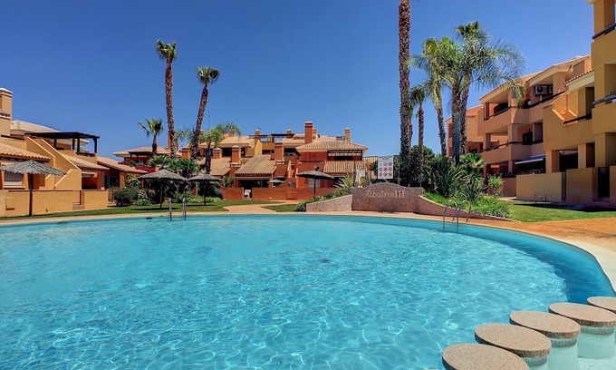 This penthouse apartment located on the popular Albatros 3 complex close to the beaches of the Mar Menor in Mar de Cristal. The complex has beautiful landscaped gardens around the centre of the complex and pool area. The apartment is furnished to a good standard and offers superb accommodation for your beach holiday. It has 2 good size bedrooms with family bathroom. It has a fully equipped kitchen including dishwasher and utility area. There are steps to the private roof solarium which is a lovely area to sunbathe, read or eat. The balcony has a retracting sun blind so you can have as much or as little sun as you want.Mar de Cristal offers a great beaches, supermarket, tennis and padel centre, sailing school and a selection of bars and restaurantsKey Features:- Fully equipped kitchen including dishwasher- Use of the complex swimming pool- Walking distance to the beach- Air conditioning/heating- Free Super fast Wifi Internet- Smart TV with international channel including UK- Dolce Gusto Coffee Machine- 24 hour local supportSwimming Pool:Outdoor Pool (seasonal)Children's Pool (seasonal)The property is located 600 m from Isla Menores sand beach, 700 m from Mar de Cristal sand beach, 700 m from Spar supermarket, 800 m from El Secreto Lounge Restaurant, 800 m from Restaurante Piccolo Mare, 3 km from Los Nietos train station, 6 km from La Manga Club golf course, 7 km from Calblanque nature reserve, 8 km from Cabo de Palos, 8 km from Aldi supermarket, 8 km from Mercadona supermarket, 16 km from La Serena golf course, 21 km from Renfe Cartagena train station, 28 km from Cartagena, 49 km from Murcia International airport, 60 km from Murcia city, 105 km from Alicante airport.