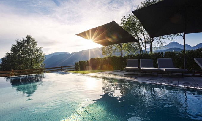 Welcome to the Hideaway Dachstein West, where contemporary elegance meets natural beauty. Our 67 m² apartment, designed to accommodate up to 4 guests, offers a perfect blend of modern comfort and serene relaxation. The apartment features two stylish bedrooms, each with a plush box-spring double bed, and two well-appointed bathrooms complete with showers, toilets, and hairdryers. Situated in a tranquil location on the edge of the forest, the Hideaway Dachstein West offers a general wellness area with a Finnish sauna and heated outdoor infinity pool. Your stay includes the TennengauPLUS Card, granting you access to exclusive discounts on local attractions. The open-plan living and dining area is designed for comfort and convenience, featuring a cosy seating area and a flat-screen TV. From this space, you can access either a balcony or a terrace, depending on the apartment's location, to enjoy the surrounding views. The kitchen is a culinary haven, equipped with everything you need, including cutlery, cookware, a ceramic hob, oven, fridge with freezer compartment, and a dishwasher. Additional amenities include a toaster, kettle, and coffee machine. For your arrival, we provide a starter set with a dishwasher tab, dishwashing liquid (sample), sponge, garbage bags, cleaning supplies, and a tea towel. Our dog-friendly policy allows you to bring your furry friends along, subject to prior request and a fee. Wi-Fi is available free of charge throughout the apartment. Please be aware of the communal pool's opening hours: Winter (01.10 - 30.04) from 16:00 to 19:00 and Summer (01.05 - 30.09) from 10:00 to 18:00.