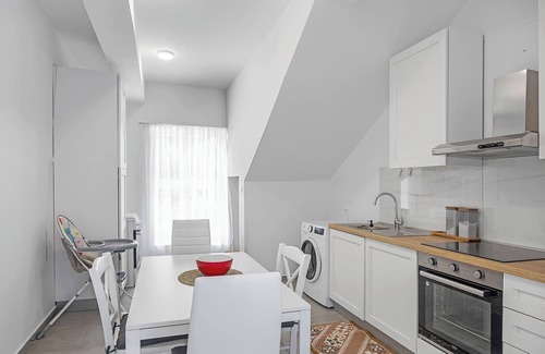 Property along with a modern interior offers a relaxing retreat for couples or solo travelers, accommodating up to 2 guests. This one-bedroom apartment features a queen-size bed and a sofa bed in the living area. It comes with a private entrance and is located on the ground floor, providing easy access to the shared garden with barbecue facilities. The apartment also includes essential amenities like air conditioning, free internet, satellite TV, and a fully equipped kitchen with an induction stove, refrigerator, oven, and dishwasher. Free private parking is available on-site, and small pets are allowed with prior notice and an additional cost. The apartment is located in Banjol, a peaceful village on the beautiful island of Rab, just 300 meters from the beach. Guests can easily walk to nearby amenities such as a grocery store, restaurant, bus station, and pet-friendly beach. Rab, known for its many sandy beaches, is perfect for families, with its rich history and scenic beauty. Explore the old Greek fortress on St. Damian hill or stroll through the narrow streets of Old Town Rab. The island’s ferry connection to the mainland makes it easily accessible, and the area offers various walking and cycling trails for nature enthusiasts. Inside, the apartment features a spacious living room that connects with the kitchen and dining area, making it ideal for relaxing or enjoying meals. The bathroom is equipped with a shower and essential toiletries, including body soap and a hairdryer. Guests can also enjoy a private patio, perfect for outdoor relaxation.