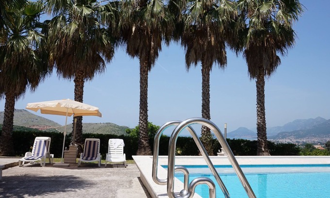 I rent a house floor area of 60m2 (left part of the house), consisting of 2 bedrooms, hallway,kitchen, bathroom and beautiful balcony with view on city and sea. Both bedrooms have a double bed. On the ground floor lives the family of 2 members (right smaller part of the house). You will be the only guests in the selected period.In front of the house you can use big swimming pool, barbecue,sun loungers... Gives you an excellent opportunity to enjoy in house and 5000 m2 of garden with barbecue and Mediterranean fruits and vegetables all at your disposal.