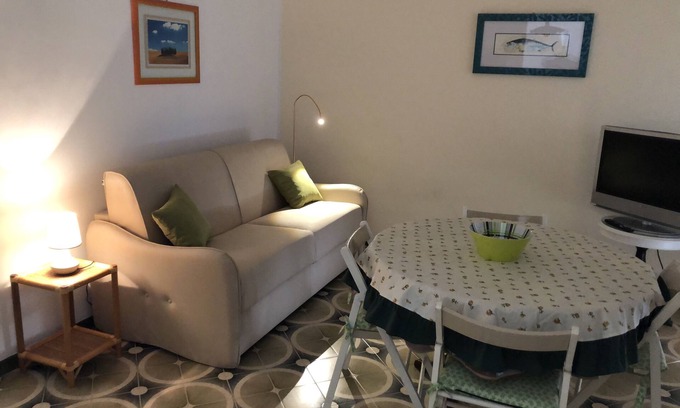 appartamento confortevole, classico e luminoso sup. abitabile mq.65, l'ideale per una vacanza al mare per 2persone, con la spiaggia a solo 10min a piedi, ubicato in centro paese, in ambito tranquillo e molto distensivo