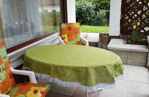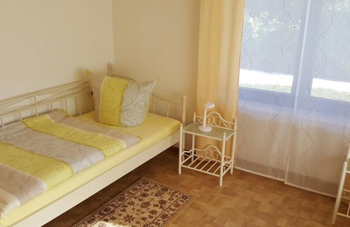 The apartment I (about 45 m²) has a separate entrance and terrace with beautiful gardens. It offers enough space for up to 2 persons (twin room). The beds are apart. The bedroom has a window with roller shutter, wardrobe and 2 single beds (with 7-zone comfort foam mattresses and adjustable slatted frames). The living room area with direct access to the terrace, which can also be used as a quiet oasis. Couch, wall unit, television, CD player with radio are also part of the equipment. The sleep coach can be used if required and costs extra (8,00 € per person per night) The bathroom with the small window: here you will find: toilet, shower cubicle, sink, bathroom mirror cabinet with 2 double-mirrored doors with LED lighting and towel radiator. The hand and bath towels, toilet paper, cotton swabs, cotton pads are provided free of charge. The kitchen area: fitted kitchen with electric hob, refrigerator, microwave, coffee machine, kettle, no oven available. Toaster, hand blender, hand blender, dining table with 3 chairs, kitchen towels, cutlery, coffee and dinner service, drinks and wine glasses. You will also be a kl. Selection of coffee, tea, spices, sugar, coffee milk for the first days. Dishwashing liquid, kitchen towels and coffee filters are also available. The terrace: the apartment has a separate terrace and a beautiful garden. Garden furniture is available.