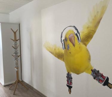 BathroomPrivate bathroom, Toilet, Towels, Toilet paper, Hairdryer, Bathtub or shower, ShowerMedia & TechnologyMobile hotspot device, Satellite channels, TV, Flat-screen TVKitchenElectric kettle, Kitchenware, Coffee machine, Dining table, Stovetop, Refrigerator, Wine glasses, Dishwasher, Toaster, Microwave, KitchenetteLiving AreaDining area, Sitting area, SofaGeneralTrash cans, Key access, Heating, Soundproof, Smoke AlarmBedroomChildrens' cribs, Linens, Wardrobe or closetAccessibilityUpper floors accessible by stairs onlyRoom AmenitiesClothes rack, Non-feather pillow, Socket near the bed |
