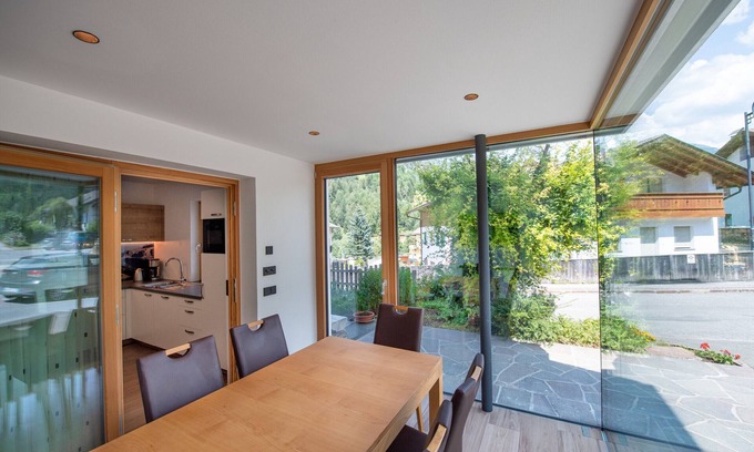 Modern two-bedroom apartment with wintergarden, which can host up to 4 adults + 2 children under 14 (for surcharge).The modern and comfortable furniture makes this recently built apartment an ideal solution to relax and fully enjoy the Dolomites. The apartment comes with 2 double rooms, 2 separate bathrooms, both with shower, a living room with kitchenette, double sofa bed and a wintergarden. The elegant wintergarden, surrounded by glass, is furnished with a dining table for unforgettable evenings with friends or family. You will also have access to the furnished garden of the house. The whole apartment is located on the ground floor. The modern kitchenette I equipped with dishwasher, coffee machine, fridge with freezer, kitchen utensils, cutlery, dishes and much more. Wi-Fi, linen and towels are included.Important information: According to recent provincial law this apartment can accommodate a maximum of:- Adults (from 14 years): 4- The remaining beds can only be occupied by children up to 13.99 years of age at the time of departurePlease note that this law is subject to strict controls by the competent authority and violation of it results in substantial fines. For this reason, no exceptions will be possible under any circumstances.Completely renovated by end of 2018, House Ploner comes with 2 modern apartments with garden and all the comforts need for perfect holidays in Val Gardena! The apartments boast modern and comfortable design, relaxing outdoor spaces and last generation domestic appliances. They are in an area of Ortisei, only 2 minutes’ drive by car or bus from the town center. A nice walking and cycling path lead you in 20 minutes by bike or 10 minutes walking to the center of Ortisei as well. This part of Ortisei called Roncadizza, is well connected with all Val Gardena and with Castelrotto / Alpe di Siusi area, all reachable by free public bus, so you can decide every day whether you want to ski or to hike in Selva, Santa Cristina, Ortisei or on the Alpe di Siusi. The bus stops to discover Val Gardena, with its hiking paths and ski slopes like the Sella Ronda Dolomiti Superski, is located only 50 m away from the house. They drive by approx. every 15 minutes and are for free, as we provide you free tickets for the whole length of your stay. They will allow you to reach the town center and the cableways in few minutes’ drive, in Summer as well as in Winter. Considering the presence of 2 children playgrounds, horse riding and the tennis and beach volley fields in the surroundings, Apartments Ploner is particularly indicated for family holidays with children. The property offers daily free access to the public swimming pools MAR DOLOMIT and twice a week to its sauna. Also the tennis courts can be used for free on reservation. House Ploner is equipped with al necessary for perfect holidays, like private parking (1 parking place per apartment), Free Wi-Fi, bike and ski deposit with boot heater, free bikes to rent (limited number). It is the perfect place to enjoy peace and tranquility, but still having the town in reachable distance.Check-in: 15:00 - 19:00 at MUSE.holiday office in Via Arnaria 9A, OrtiseiSome houses have remote check-in at the house with code access, we ask you to contact us about this at least 48 hours in advance to check if the house you have booked is among them.Check-Out: In person from 8:00-9:00 at MUSE.holiday office in Via Arnaria 9A, Ortisei (except houses with code access)Not all houses allow pets. To avoid misunderstandings, we ask you to inform us by separate mail if you intend to bring them with you. In houses where pets are allowed, there is a surcharge of € 15.00 / animal / night. Baby cot, high chair and cot rail are available for a fee and must be booked in advance.Check-In after 7 p.m. only possible with prior notification by 6 p.m. day of arrival and upon submission of required documents and payment of tourist tax + extras by credit card for check-inHeating is on from October to April (during this period the heating is not on if the outside temperature exceeds 15°c or if the inside temperature reaches or exceeds 21°C)Charging of electric vehicles or other storage devices not permitted, unless otherwise stated in the advertisement. If allowed, it is available only after reconfirmation by MUSE.holiday and at a variable extra cost.In case of wasted electricity, gas or other utilities there is an additional cost (e.g.: lights on all day in the absence of guests, heating running with open windows).It is duty of the guests to open the windows at least twice a day, once in the morning and once in the evening, for at least 5 minutes each, to let humidity exit the apartment and avoid mold formation. If this rule is not respected and mold is found upon departure of the guests, costs to restore the apartment integrity will apply.Due to the geographical location, Wi-Fi may be interrupted or slowed down, so this service is not always guaranteed.The house is not equipped with foodstuffs such as cooking spices or various consumables such as shampoo, soap, etc... Any consumables present are intended only as a welcome kit and will not be refilled during your stay.The payments required to enter the flat are the tourist tax + pre-authorization through SWIKLY of the security deposit by credit card of 500€.If not previously agreed, the physical keys, the benefit card and other accessories provided at check-in are to be returned to the MUSE.holiday office in Via Arnaria 9A in Ortisei, otherwise 50€ will be charged for key collection.The final cleaning amount covers a standard cleaning only. It does not include the washing of the dishes and the removal of trash from the apartments to the indicated spots. Therefore, excessively dirty apartments, dishes not washed, and trash not removed will be amended with a variable extra fee, basing on the entity of the working hours surplus.Important: We are partnered with SWIKLY – the leading vacation rental deposit 