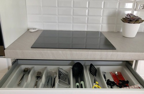 Each composed of a living room with equipped kitchen (induction hob, oven and dishwasher), TV, sofa bed and table.