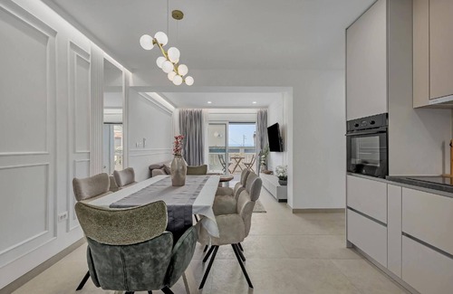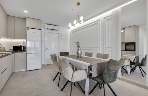 Inside, the apartment presents a well-thought-out arrangement designed to cater to your every need. Each of the three bedrooms is complemented by its own bathroom, ensuring privacy and convenience for all guests. The presence of air conditioning throughout the apartment guarantees comfort regardless of the weather outside. Practical amenities such as a washing machine and clothes dryer for exclusive use add a touch of home-away-from-home, while the inclusion of a coffee machine and electric kettle in the kitchen ensures your mornings start on a high note.