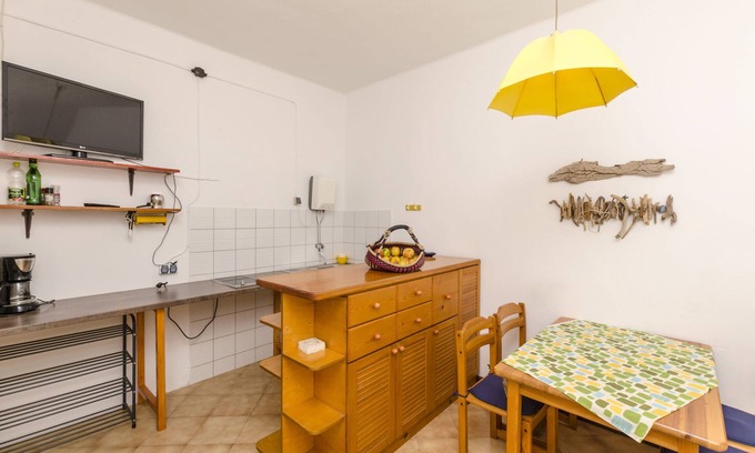 Accommodation Marija offers space up to 4 guests. The picture perfect nature and rocky and pebble beaches are 300 m away. No crowds, no fixed mealtimes and no overcrowded terraces - awake your inner chef using available Grill and indulge in delicious local food. Fill your evenings with lots of laughter and fun whilst sipping local drink(s) on 3 m2 balcony. Refresh and unwind on 15 m2 terrace we are sure you’ll love. Nice little added bonus is view of Quiet street.