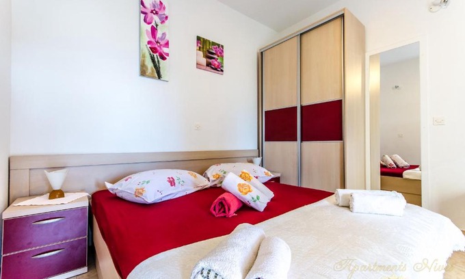 Apartments Nives Suhi Potok provides air-conditioned rooms in Jesenice. This beachfront property offers access to a balcony, free private parking, and free Wifi. Guests can make use of the outdoor fireplace or the barbecue, or enjoy views of the city and inner courtyard. The apartment provides guests with a terrace, sea views, a seating area, satellite flat-screen TV, a fully equipped kitchen with a fridge and a stovetop, and a private bathroom with walk-in shower and a hair dryer. A patio with an outdoor dining area and garden views is offered in every unit. At the apartment complex, all units are equipped with bed linen and towels. Guests at Apartments Nives Suhi Potok will be able to enjoy activities in and around Jesenice, like snorkeling, diving, and fishing. A baby safety gate is also available at the accommodation, while guests can also relax in the garden. Suhi potok Beach is a few steps from Apartments Nives Suhi Potok, while Mladezi Park Stadium is 11 miles from the property. Split Airport is 21 miles away, and the property offers a paid airport shuttle service.