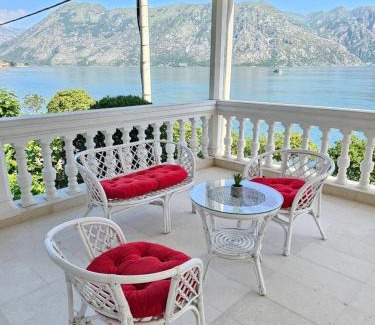 Enjoying a quiet location, Villa Duja is set 492 feet from the center of Prčanj. It offers self-catering accommodations with free Wi-Fi. Free private parking is possible on site. The beach is right in front of the property and free-to-use sunloungers are provided. All accommodations units are air-conditioned and consist of a kitchenette with a dining area and a bathroom with shower. Some come with a balcony with sea views. The nearest restaurant is only 66 feet away, while a grocery store can be reached within 164 feet. Football and basketball courts are 131 feet from the property. A local bus stop is 164 feet from the Villa Duje. The Main Bus Station is in Kotor, 3.1 mi away. Tivat Airport is at a distance of 5 mi. The town of Budva can be reached within 12 mi.