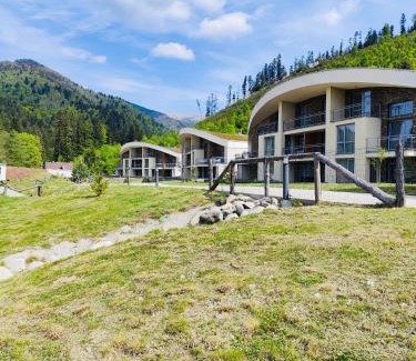 Featuring garden views, Apartments Relax Tále in Evergreen Resort in Tale features accommodations and a garden. This recently renovated apartment is located 7.7 miles from Chopok mountain and 27 miles from Liptov Castle. There's a sun terrace and guests can make use of free Wifi, free private parking, and an electric vehicle charging station. Each unit comes with a sofa, a seating area, a flat-screen TV, a well-equipped kitchen, and a private bathroom with a hair dryer. A dishwasher, a microwave, and fridge are also available, as well as a kettle. At the apartment complex, every unit is equipped with bed linen and towels. Skiing and cycling are possible within the area, and the apartment offers ski storage space. Poprad-Tatry Airport is 48 miles from the property.