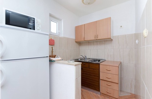 Accommodation Slavenka offers space up to 5 guests. The picture perfect nature and pebble and concrete slabs beaches are 250 m away. Share the photos of your well-deserved vacation using Internet available for your use. No crowds, no fixed mealtimes and no overcrowded terraces - awake your inner chef using available Grill and indulge in delicious local food. Fill your evenings with lots of laughter and fun whilst sipping local drink(s) on 6 m2 balcony. Nice little added bonus is view of Green area.