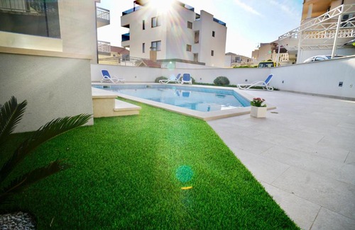 Offering a heated outdoor pool and a terrace with sun loungers, Apartments Villa Aquamarie is located in Trogir, about 0.9 mi from its UNESCO-protected Old Town. Free WiFi access is available throughout the property. The apartments are air-conditioned and consist of a seating area with a satellite flat-screen TV, and a kitchen with a stove, fridge, and dining area. Every unit features a bathroom with shower. A terrace with pool views is offered in all units. Windsurfing is possible within the area around Villa Aquamarie. The major sights of Trogir can be found a 15-minute walk away. Split Airport is 4.3 mi away.
