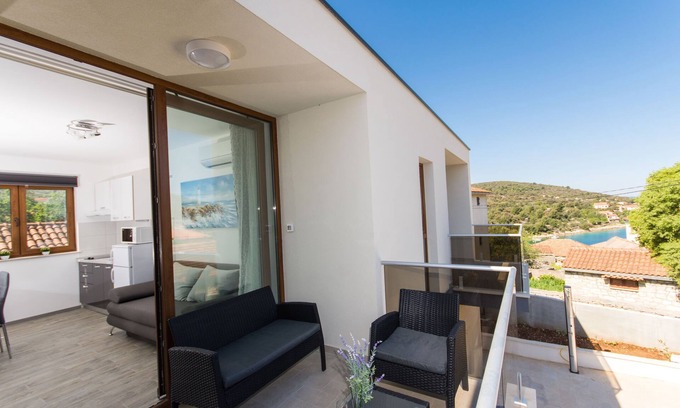 Apartments Villa LA (59731-A2) - Drvenik Veliki is located in Veliki Drvenik. Apartments Villa LA (59731-A2) - Drvenik Veliki provides accommodation, featuring Air Conditioner, Ocean View, Security/Safety, among other amenities. This Apartment features Air Conditioner, Ocean View, Security/Safety, to make your stay a comfortable one.