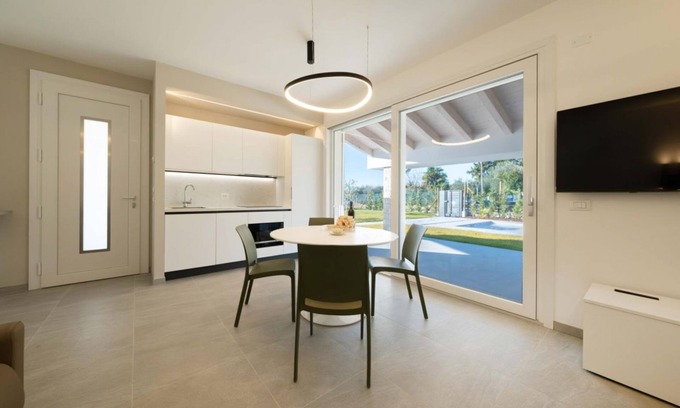 Discover your corner of paradise at Residenza Dunamis Deluxe, a beautiful newly built villa located in Lazise, on Lake Garda. Consisting of two independent apartments, each with a spacious living area with a modern and equipped kitchen, two bedrooms, a bathroom with shower, a covered terrace and a large shared swimming pool, this property is the ideal place for a relaxing and comfortable holiday.