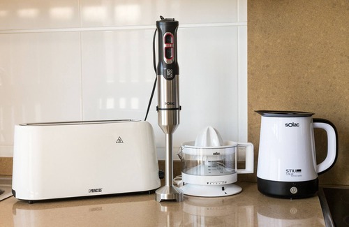 - Practice fully equipped kitchen with dishwasher, microwave, oven, refrigerator/freezer, Nespresso machine, kettle, toaster, blender…