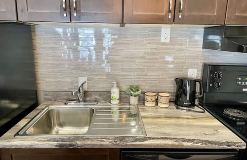 The unit has an open concept kitchen with bar seating for 4, dining table that seats 2, and a living room with pull out sofa and access right outside the Inn so you can come and go easily.