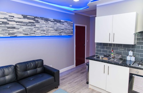 The luxurious suites include fully fitted high gloss kitchens with integrated appliances including: washing machine, hob, oven and fridge-freezer. The apartments also benefit from super fast fibre optic internet, central heating, CCTV, on-site maintenance and free parking.