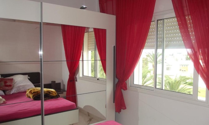 Featuring air-conditioned accommodation with a balcony, Appart شقة سكرة Aéroport Tunis Carthage is set in La Soukra. This apartment offers free private parking, a 24-hour front desk and free WiFi. The apartment features 2 bedrooms, a flat-screen TV with satellite channels, an equipped kitchen with a microwave and a fridge, a washing machine, and 2 bathrooms with a bath. A terrace is available for guests at the apartment to use. Salammbo Tophet Archaeological Museum is 12 km from Appart شقة سكرة Aéroport Tunis Carthage, while Carthage Golf is 3.6 km away. The nearest airport is Tunis–Carthage, 8 km from the accommodation, and the property offers a paid airport shuttle service.