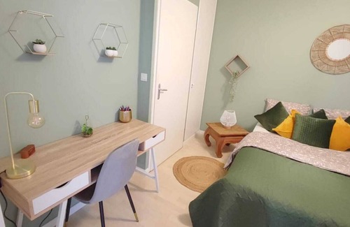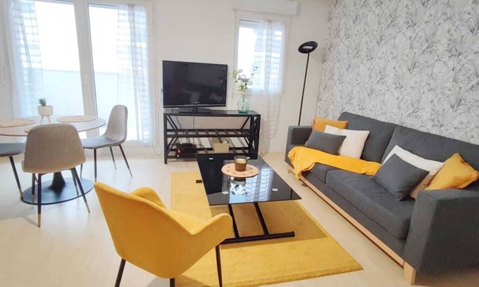 The 1BR apartment has a living room with a comfortable sofa bed for 2 people, a designer bedroom with a cozy double bed for 2 people, a fully equipped American kitchen with everything you need. for your delicious little dishes, a bathroom with bath and bath towels, a toilet, a balcony offering a beautiful view and access to the collective swimming pool of the residence, in short everything you need you need for a 5 star stay. In addition you have the possibility to do your laundry directly in the apartment. So no more excuses and questions before finalizing your reservation. :)