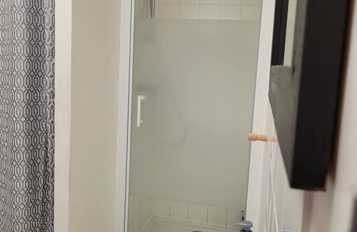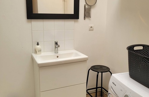 The kitchen is equipped with an oven, a stovetop, and a refrigerator, as well as a coffee maker, an electric kettle, and a microwave. Connect to the WiFi, or get cozy in front of the TV. Bathroom amenities include a hair dryer, towels, and toilet paper. And because there's a washing machine, you can go a bit lighter on your packing. Other amenities at this 1-bedroom, 1-bathroom rental include bed sheets, an ironing board, heating, and limited housekeeping.