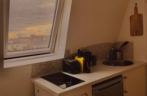 Nestled in Paris, this 1-bedroom, 1-bathroom apartment brings it all within your reach. Fans of nature and the outdoors will love being 12 minutes by foot from Canal Saint-Martin and 15 minutes from Parc des Buttes Chaumont. Place de la République is an easy 13-minute walk away and Grands Boulevards is also a quick 5-minute walk away. Check out other neighborhoods and see more of Paris by hopping on a metro at either Couronnes Station, a short 3-minute walk away, or Belleville Station, 6 minutes away.