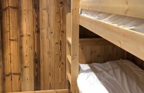 This apartment on the first floor has a south-facing balcony with beautiful views over the valley. Covering 75 m² in total, it has two bedrooms, each with a large double bed (one of which can be separated into two single beds) as well as a small bedroom with two bunk beds, the living room has a sofa which converts into a double bed. This apartment features two bathrooms and can accommodate a maximum of seven adults and one child.