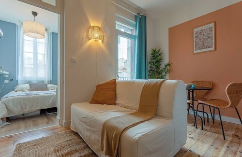 Discover this charming renovated apartment in Toulouse, nestled in a quiet street yet close to the city's bustle. Bright and comfortable, this 22 m² space is located on the 2nd floor (no elevator) and can accommodate up to 2 people.