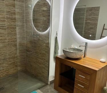 Offering a garden, Appartement cosy avec piscine features accommodations in Saint-Claude. This property offers a private pool, free Wifi, and free private parking. Featuring a terrace with sea views, this apartment also comes with a flat-screen TV, a well-equipped kitchen with a dishwasher, an oven, and a microwave, as well as 1 bathroom with a shower. The property has an outdoor dining area. Pointe-à-Pitre Le Raizet Airport is 39 miles from the property.