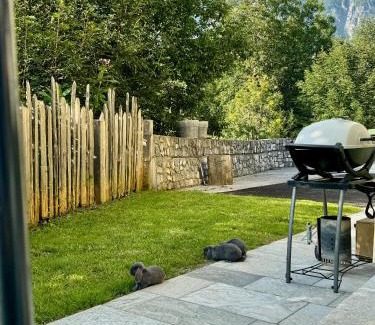 BathroomShower, Walk-in shower, Hairdryer, Spa tub, Towels, Private bathroom, Bathtub or shower, Toilet, Toilet paperMedia & TechnologySatellite channels, TV, Flat-screen TVActivitiesHot tub, SaunaKitchenOven, Stovetop, Refrigerator, Dining table, Wine glasses, Dryer, Dishwasher, Coffee machine, Cleaning products, Kitchen, Toaster, Kitchenware, Microwave, Kitchenette, Electric kettleLiving AreaSofa, Sitting area, Desk, Dining areaGeneralPrivate entrance, Hardwood or parquet floors, Heating, Key access, Fan, Trash cans, Fire extinguisher, Tile/Marble floorViewMountain view, View, Garden viewBedroomWardrobe or closet, Linens, Childrens' cribsOutdoorsTerrace, Outdoor furniture, Outdoor dining areaAccessibilityEntire unit located on ground floor, Upper floors accessible by stairs onlyBuilding CharacteristicsSemi-detached, Private apartment in buildingRoom AmenitiesSofa bed, Clothes rack, Socket near the bed, Feather pillow |