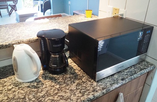 As you settle into this 1-bedroom, 1-bathroom rental, you'll find a living room and air conditioning. Bathroom amenities include a hair dryer, towels, and toilet paper. The kitchen is equipped with an oven, a stovetop, and a refrigerator, as well as a coffee maker, an electric kettle, and a microwave. And because there's access to laundry facilities, you can go a bit lighter on your packing.