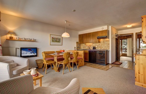 Classic apartment in La Tzoumaz, 4 Vallees, Switzerland for 5 persons. The apartment is situated in a mountainous area, close to restaurants and bars and a tennis court, only 500 m from the piste and the skilift. The apartment has 2 bedrooms and 1 bathroom. The vicinity of sports activities, places to go out, sights and culture makes this a fine apartment to spend your holidays in Switzerland with family or friends.