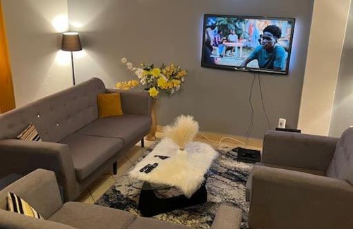 Appartement Meublé au Centre de Bonamoussadi et a 1 min du Restaurant Tchop et Yamo is located in Bonamoussadi, just 5 miles from Akwa Stadium and 5.7 miles from Port Authority of Douala. This property offers access to a terrace and free private parking. With free Wifi, this 2-bedroom apartment offers a cable flat-screen TV, a washing machine, and a fully equipped kitchen with a fridge. The air-conditioned unit at the property features a bidet and a dressing room. The accommodation is non-smoking. Bonanjo Park is 5.8 miles from the apartment, while Douala Museum is 6.1 miles away. The nearest airport is Douala International Airport, 6.2 miles from Appartement Meublé au Centre de Bonamoussadi et a 1 min du Restaurant Tchop et Yamo.