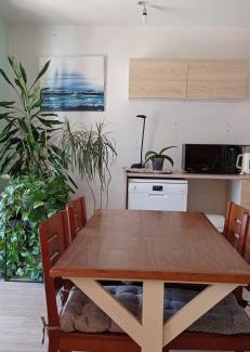 Appartement spacieux Verdon Sur Mer offers accommodations in Le Verdon-sur-Mer, a 15-minute walk from Chambrette Beach and 1.8 miles from Gironde Estuary. This property offers access to a terrace and free private parking. The apartment consists of 1 bedroom, a living room, a fully equipped kitchen with a dishwasher and a coffee machine, and 1 bathroom with a walk-in shower and a hair dryer. Guests can enjoy a meal on an outdoor dining area while overlooking the garden views. For added privacy, the accommodation features a private entrance. Guests can enjoy the outdoor swimming pool and garden at the apartment. Notre-Dame de la Fin des Terres Basilica is 4.1 miles from Appartement spacieux Verdon Sur Mer. La Rochelle - Île de Ré Airport is 56 miles from the property.