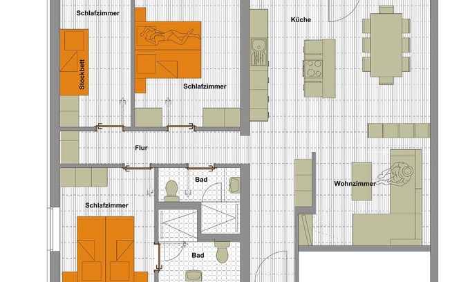 Large dining table for up to 10 people, including dining utensils, cultivated glass culture for wine, beer schnapps and sparkling wines leave nothing to be desired. There is also a spacious couch with a new flat screen and all free Sky programs.