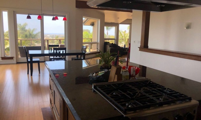 Beautiful custom home in the heart of old Carlsbad with panoramic ocean views. Gourmet kitchen, large open floor plan, and living area, all with beautiful ocean views. Large flat screen T.V with surround sound. Huge ocean view decks, with additional rooftop view deck. Large master bedroom/bathroom. Full use of backyard with fire pit and BBQ. Full workout area in garage. Approx 1 mile to the beach. Close to ALL with easy access to freeways 5 and 78. Endless activities and parks all within an hour drive: