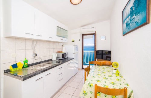 You'll love to stay in this charming practical one-bedroom apartment with the balcony and sea view in the small fisherman village Bratus near tourist center Makarska.