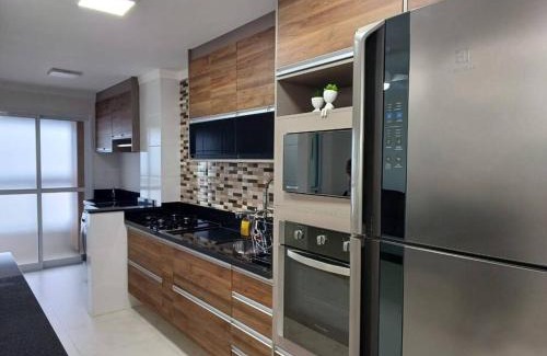 Offering a garden, Apto frente mar maravilhoso centro mongaguá features accommodations in Mongaguá. This beachfront property offers access to a terrace, free private parking, and free Wifi. The accommodation offers a 24-hour front desk and an elevator for guests. The spacious apartment is composed of 2 bedrooms, 2 living rooms, a fully equipped kitchen, and 2 bathrooms. A flat-screen TV is provided. The accommodation is non-smoking. For guests with children, the apartment provides a baby safety gate. A bicycle rental service and a private beach area are featured at Apto frente mar maravilhoso centro mongaguá, and guests can go walking tours in the surrounding area. Sao Paulo Beach is a few steps from the accommodation, while Itanhaem Bus Station is 15 miles away. Sao Paulo/Congonhas Airport is 51 miles from the property.
